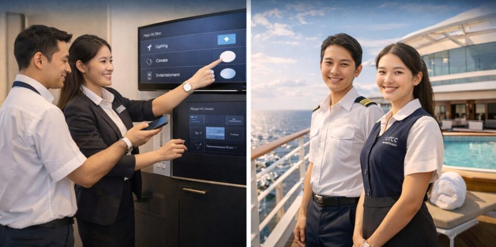 อาจารย์กรกมล มุสิกชาติ (อ.เข็ม) ผู้เชี่ยวชาญด้านการจัดการโรงแรมและเรือสำราญ อาจารย์ประจำสาขาวิชาการจัดการโรงแรมและเรือสำราญ คณะการท่องเที่ยวและอุตสาหกรรมบริการ มหาวิทยาลัยหอการค้าไทย ได้ให้ความเห็นว่า “ปัจจุบันอุตสาหกรรมโรงแรมและเรือสำราญต้องการบุคลากรที่ เข้าใจการบริการควบคู่กับเทคโนโลยี ไม่ใช่เพียงแค่ให้บริการแขก แต่ต้องสามารถบริหารประสบการณ์ลูกค้าในห้องพักอัจฉริยะ วิเคราะห์ข้อมูลการใช้บริการ และทำงานร่วมกับระบบดิจิทัลได้อย่างมีประสิทธิภาพ” ซึ่งทักษะเหล่านี้คือทักษะที่โรงแรมและเรือสำราญยุคใหม่กำลังมองหา